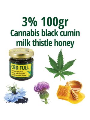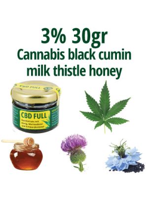 "CBD FULL" is a dietary supplement made from full-spectrum hemp extract, containing all secondary plant compounds and medicinal plants. Honey is used as an absorption enhancer and preservative. The product is handmade according to ancient recipes and does not contain any artificial colors, flavors, or preservatives. It has been scientifically researched for its positive effects.